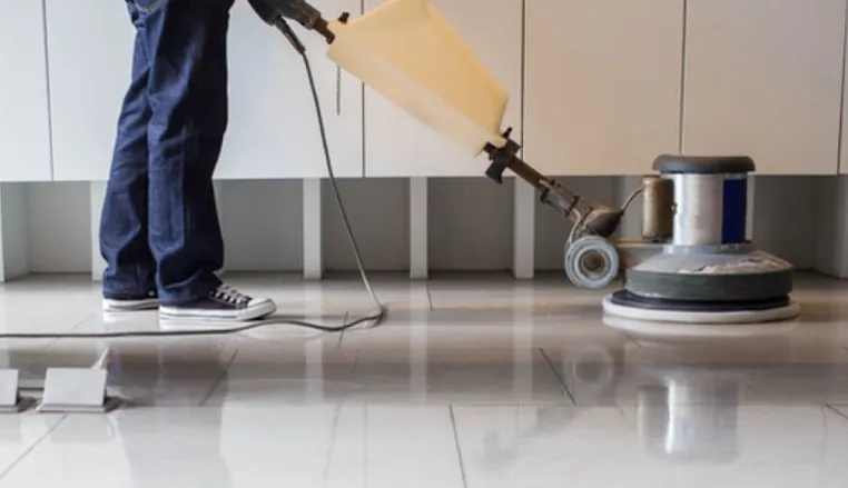 Tahap pertama adalah membersihkan lantai dari debu, kotoran, dan noda menggunakan sapu halus atau vacuum cleaner. Selain itu, mesin floor polisher dipastikan dalam kondisi baik dan pad pemoles dipilih sesuai kebutuhan.